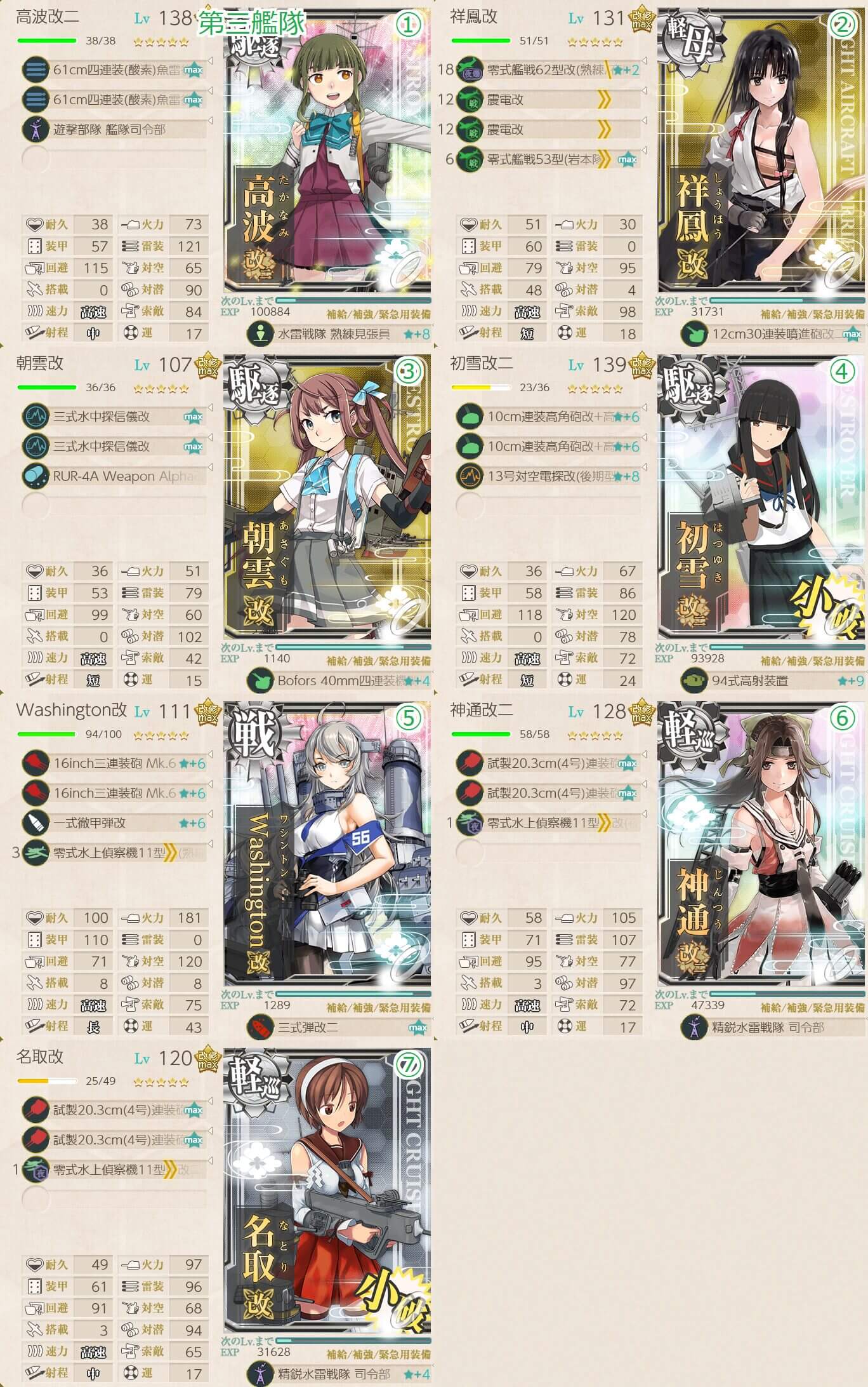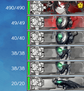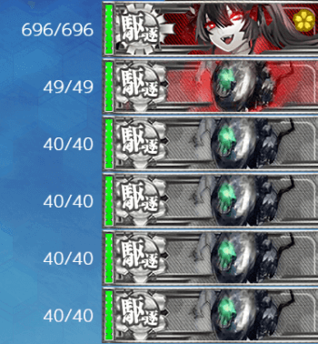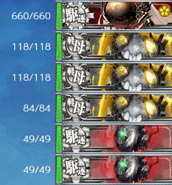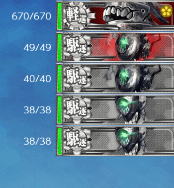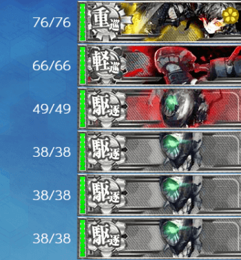 - 重巡級 x1 , 軽巡洋艦 x1 , 駆逐艦 x4