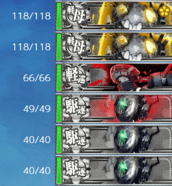 - 戦艦級 x1 , 軽空母 x1 , 軽巡洋艦 x2 , 駆逐艦 x3