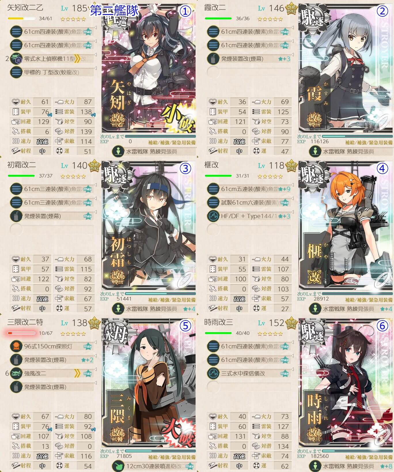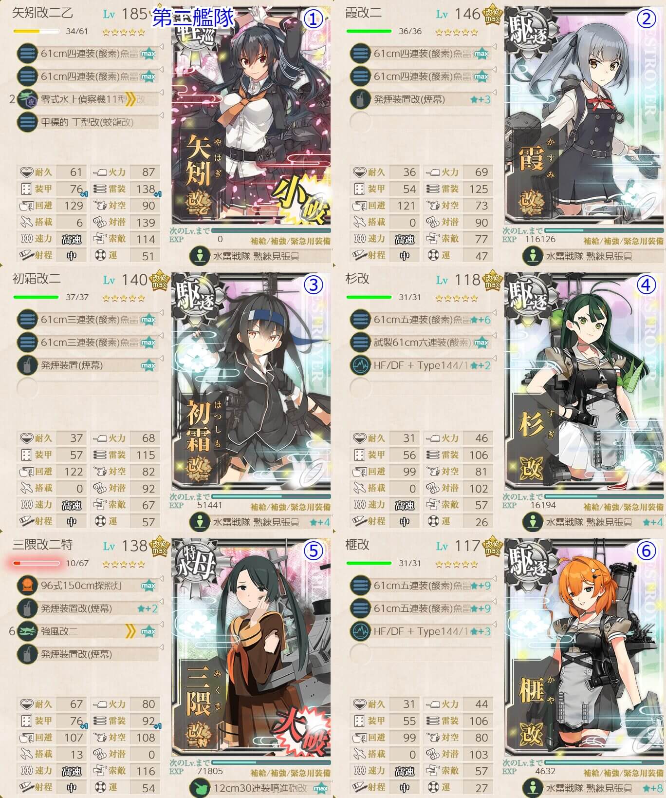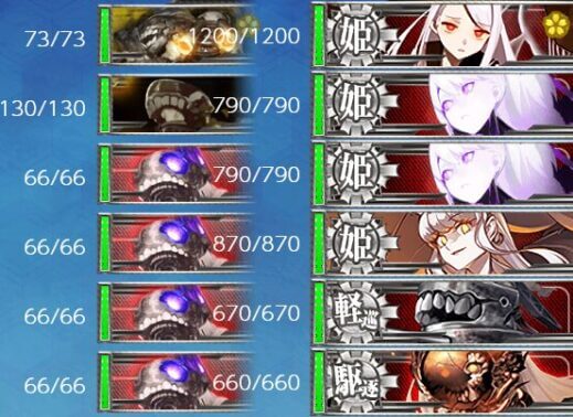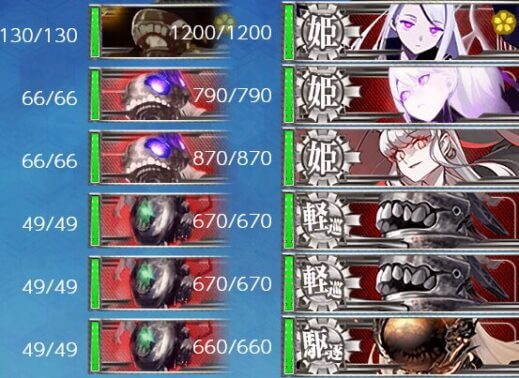- 重巡級 x1 , 軽巡洋艦 x1 , 駆逐艦 x4