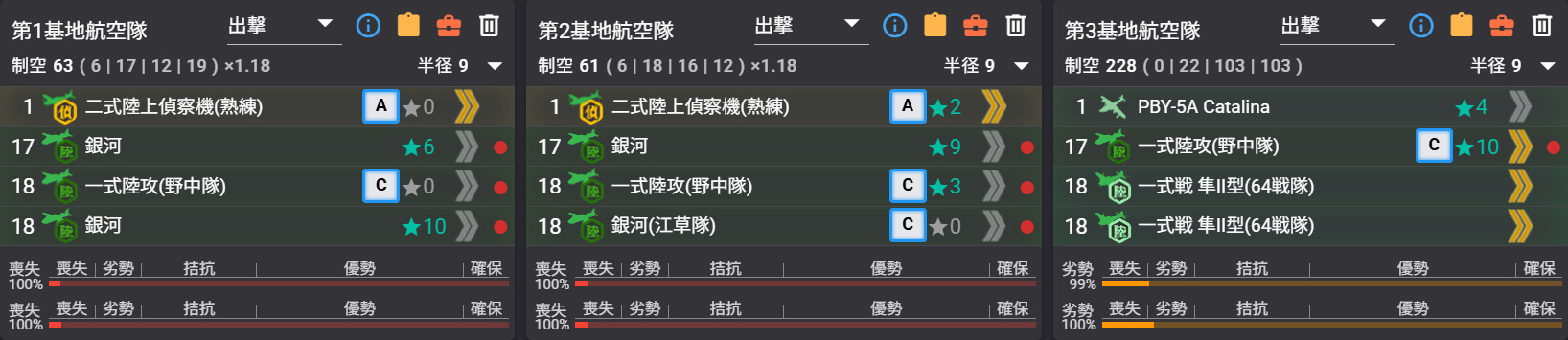| 基地航空隊 | ・出撃可能 x3 |