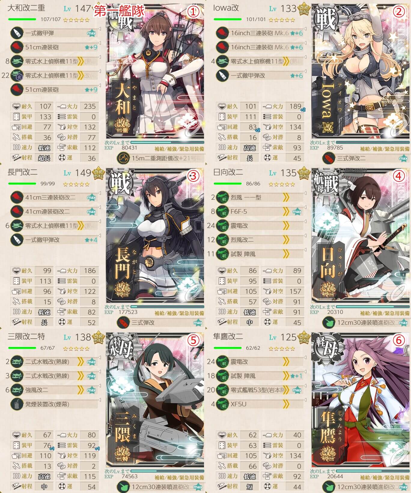 連合艦隊札であればE5-3、E5-4の両方を高練度の主力艦で攻略できます。