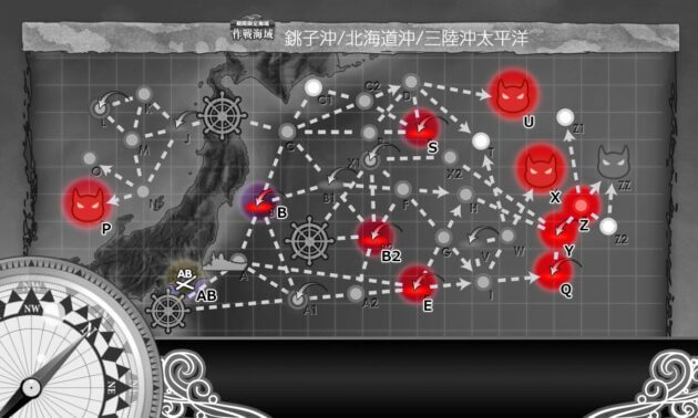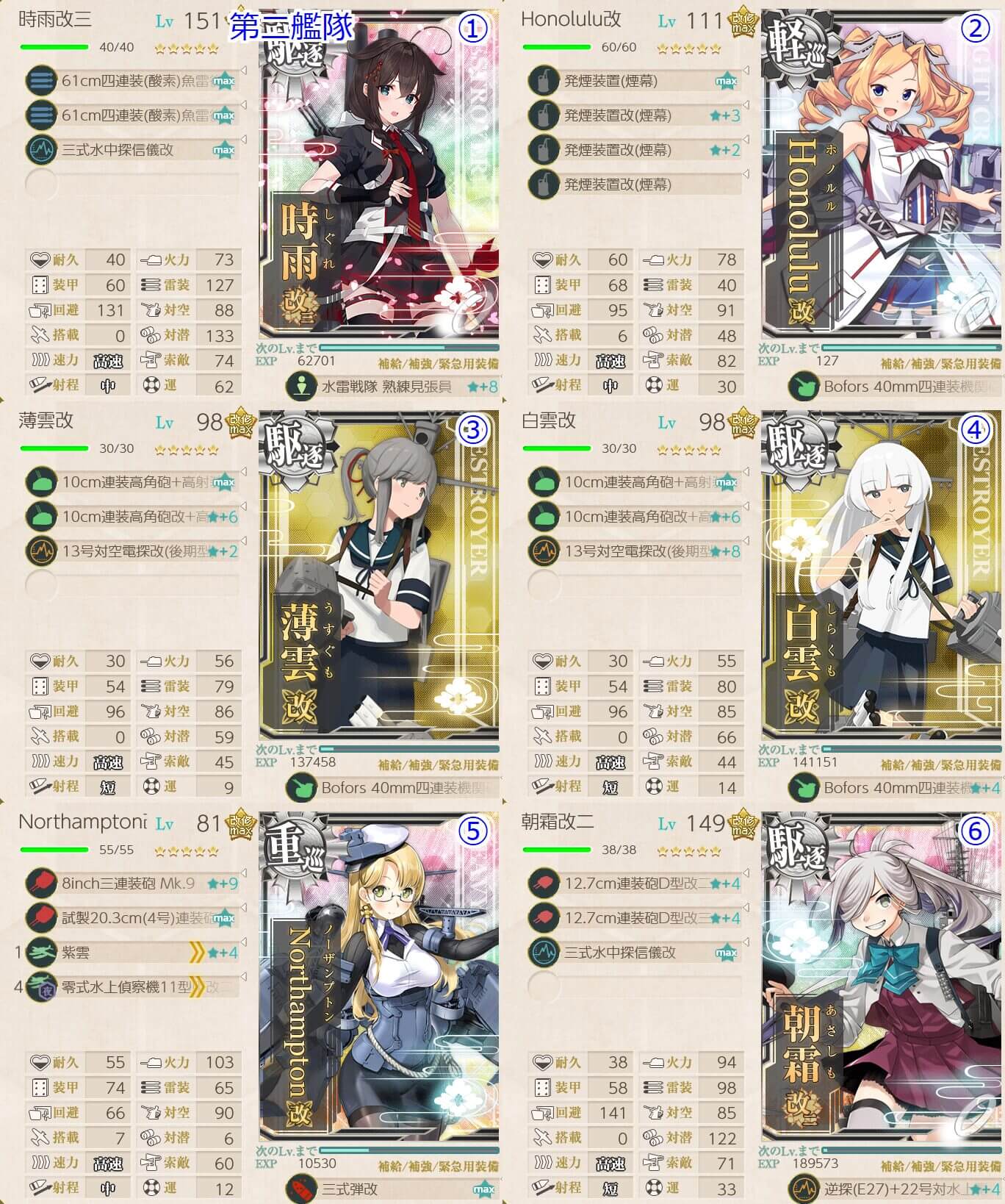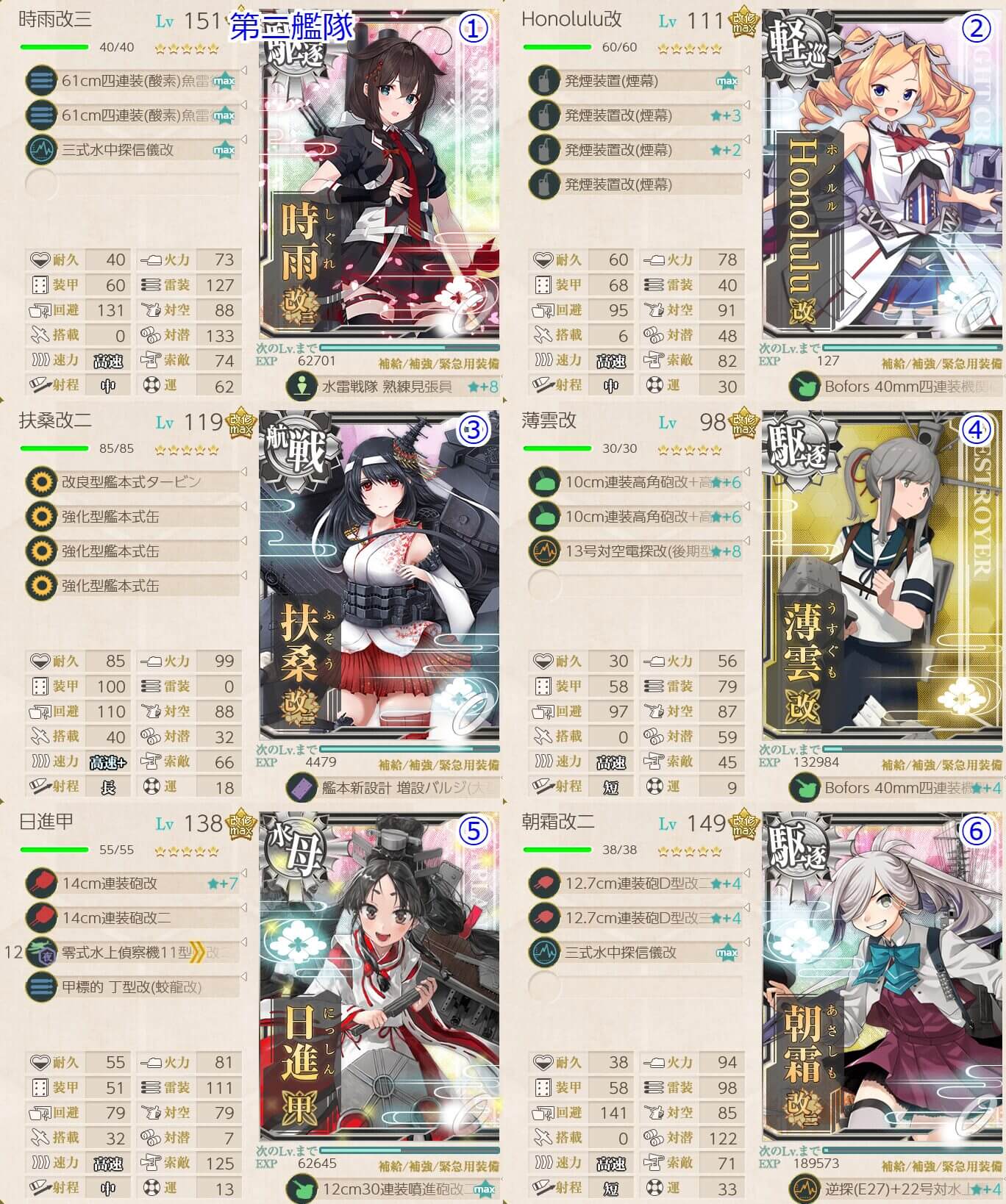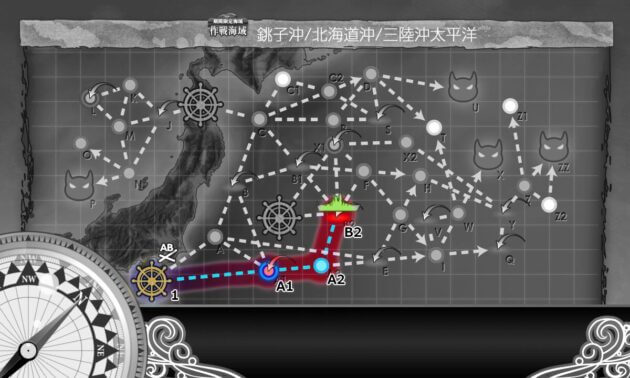 こちらの編成でA(対潜)>B(空襲)>B1(空襲)>B2(空襲)>F(水上)を通ります