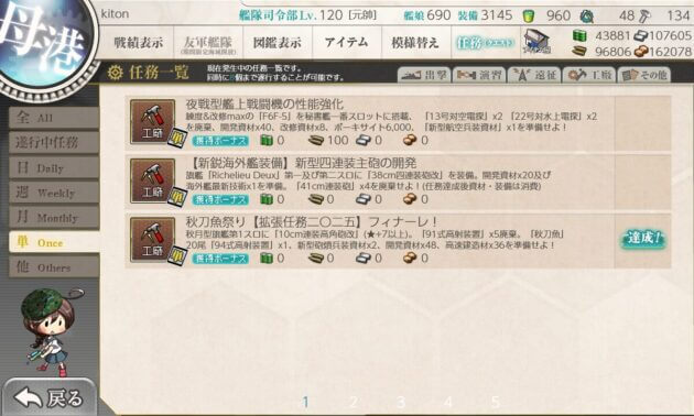 【艦これ】任務『秋月型防空駆逐艦用兵装の拡充』攻略編成【装備枠拡張】