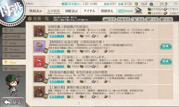【艦これ】任務『【工廠任務】新装備運用のための工廠整備【弐】』攻略編成【ネ式エンジン入手】
